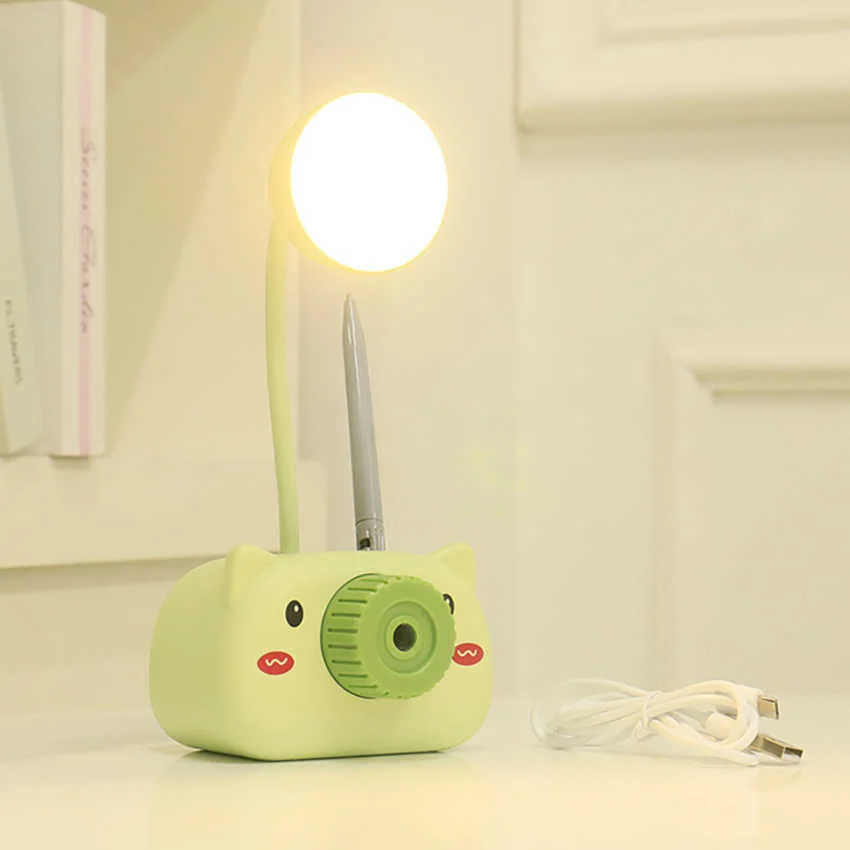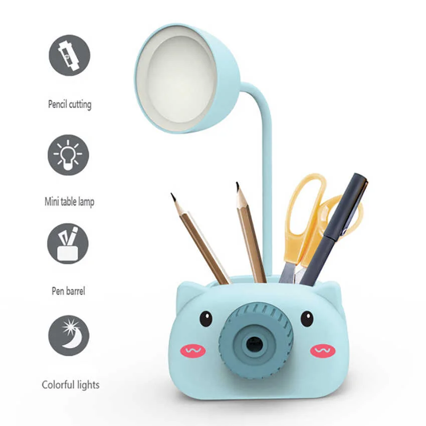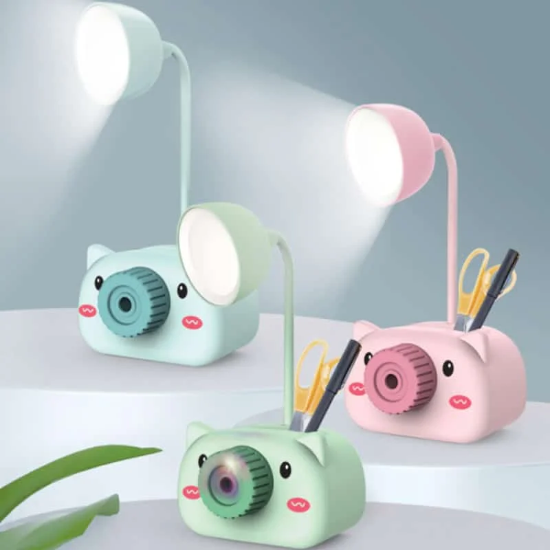 Kids Camera LED Table Lamp with Pencil Sharpener, Mobile Stand, Pen Stand