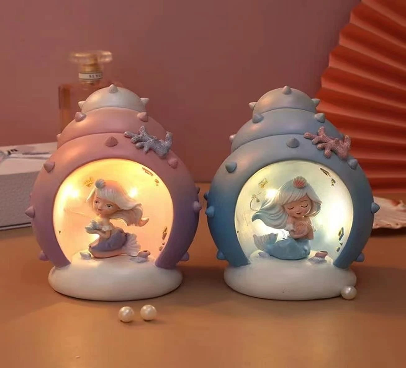 + Special GiftA lamp mermaid just for you! This colourful lamp is all you need to make your room spe-shell. These beautiful lamps are available in 2 colours. This is a resin lamp that runs on battery cells.